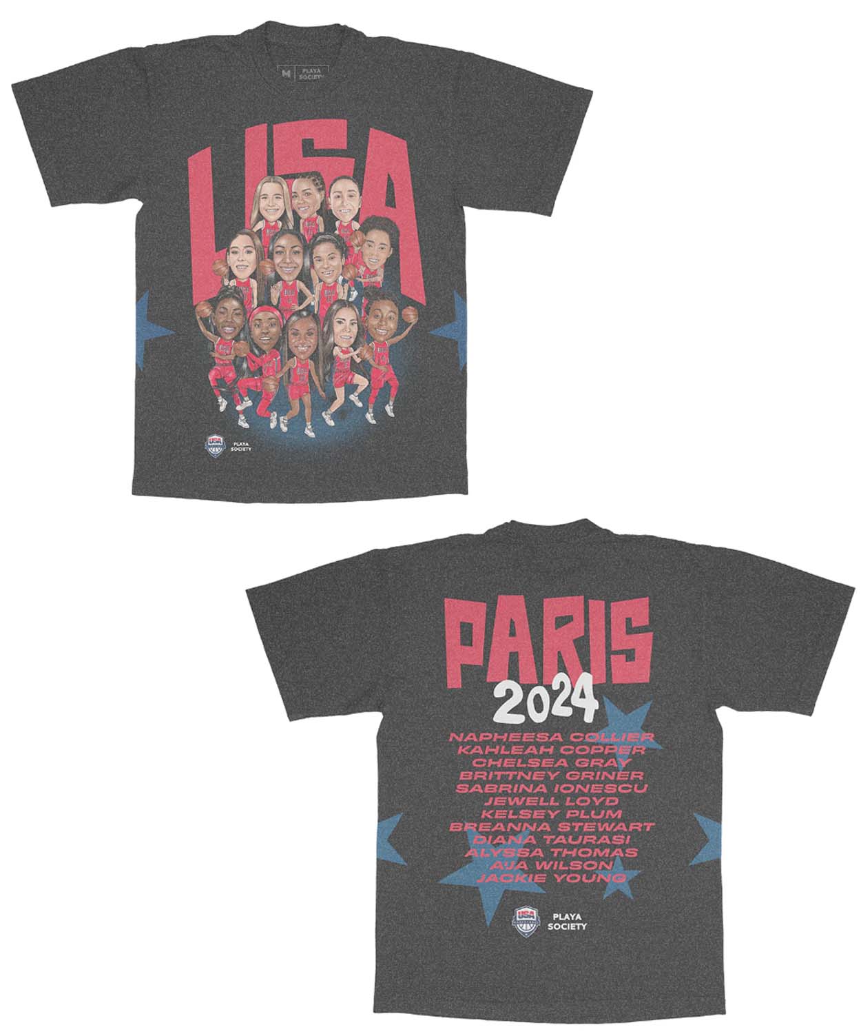 Playa Society Store Merch Playa Society 2024 Usa Basketball Roster T-shirt