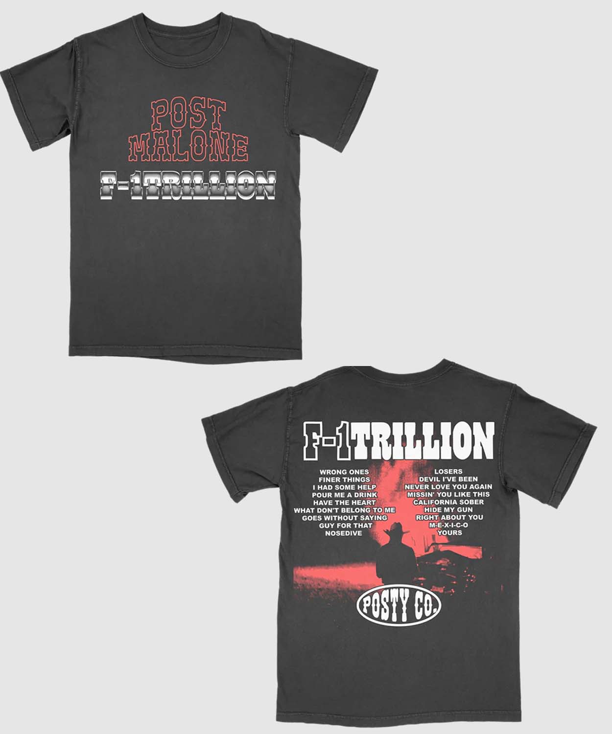 Post Malone Official Shop F-1 Trillion Tracklist T-shirt