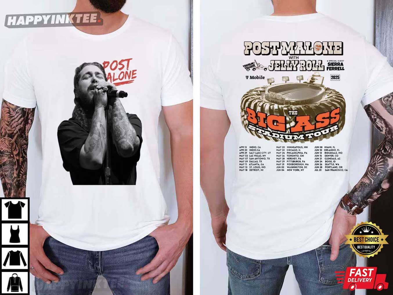Post Malone Rapper Big Ass Stadium Tour 2025 Fan Gift T-shirt