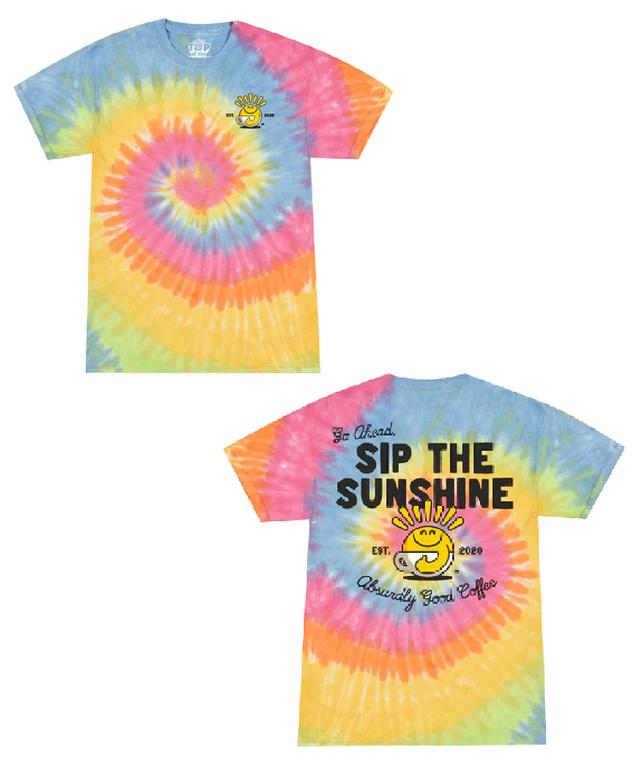 Sip The Sunshine Rainbow Tie-dye T-shirt Top Of The Mornin Coffee Shop Merch Store