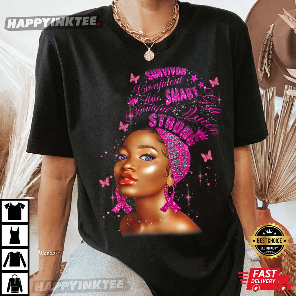 Strong Smart Black Women Breast Cancer Survive Pink Ribbon T-shirt