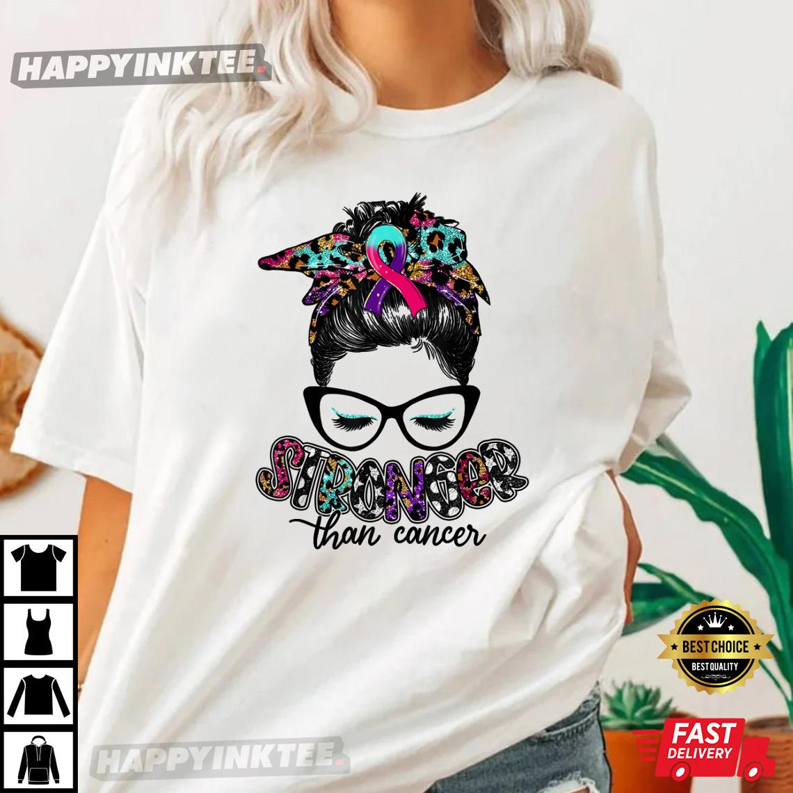 Stronger Than Cancer Messy Bun Thyroid Cancer Survivor T-shirt