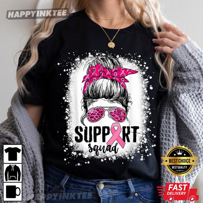 Support Squad Messy Bun Warrior Breast Cancer Awareness T-shirt