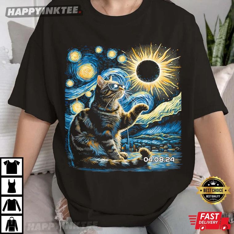 Tabby Cats Howling At Solar Eclipse April 8th 2024 Gift Idea T-shirt