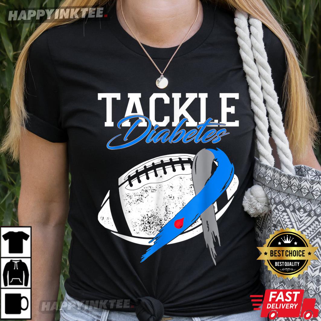 Tackle Diabetes Blue Football Type Diabetes Awareness T-shirt