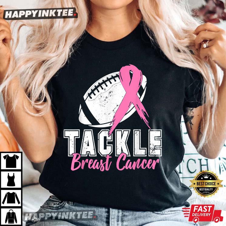 Tackle Cancer Football Pink Ribbon Breast Cancer Awareness T-shirt